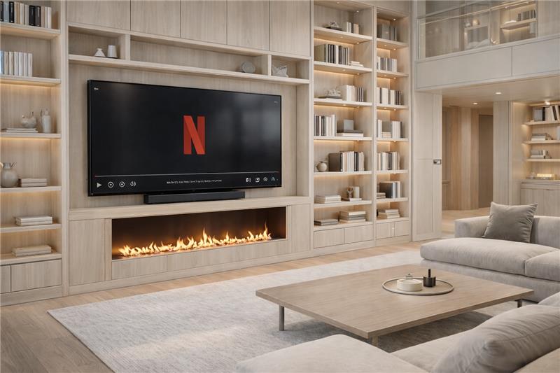 Clients are increasingly drawn to fireplaces with a cinematic presence. Inspired by science-fiction aesthetics, the NEX Media Wall with Fireplace reflects demand for intelligent, automated solutions.