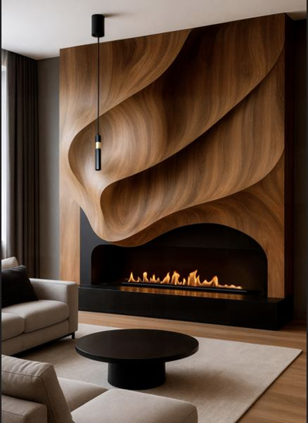 Curves are no longer limited to furniture or arches—they now shape fireplaces themselves.