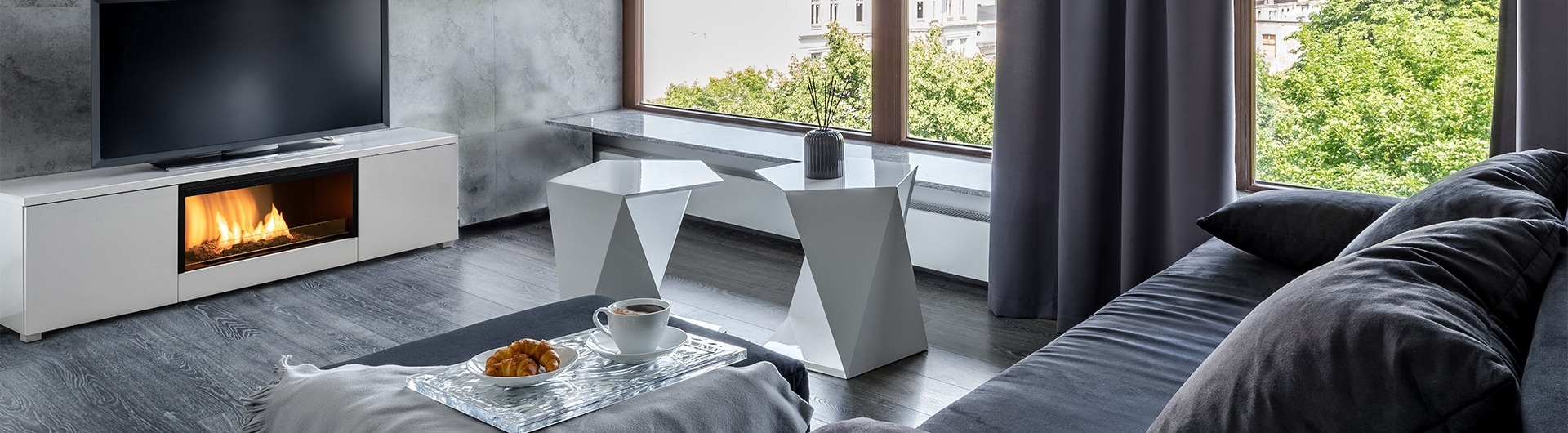 tv unit with fire