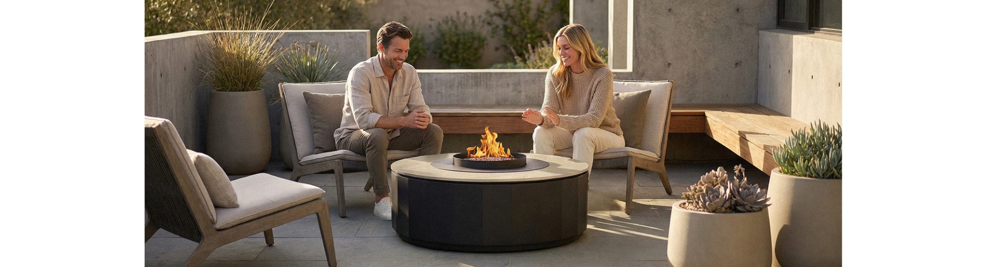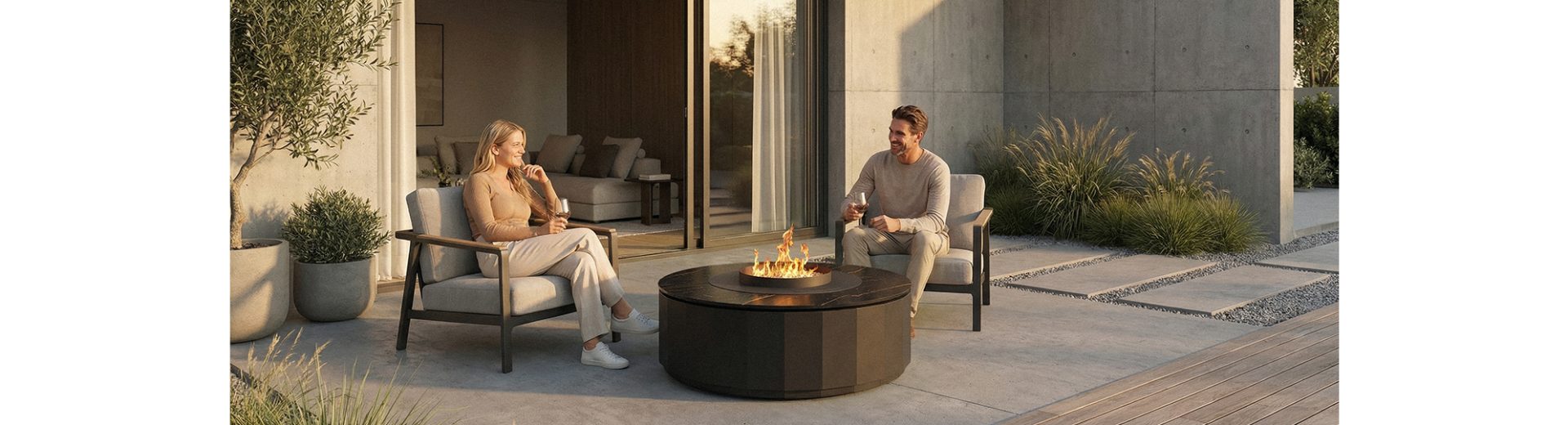 Outdoor BEV® technology burnerThe eye-catching, star-shaped outdoor fire table running on bioethanol technology with a big, functional worktop. It provides a real flame, natural warmth, and a striking visual effect for up to 22 hours of burn time. The automatic refueling system with an integrated pump and fuel hose, makes operation easy and safe. Equipped with a Plug & Play system for quick and easy instalation. You just need to plug the fireplace into the power outlet. Control the Comet Table via remote control or mobile app, and enjoy the charm of real fire.