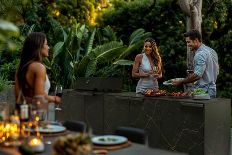 People instinctively gather around fire and food. Live cooking and open flames create focal points that draw people together, making them central elements of modern outdoor living.