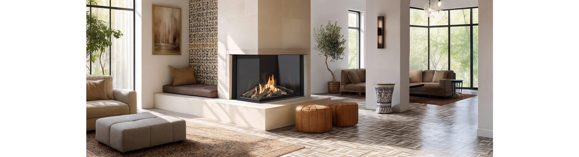 Sono is available in three variants, allowing you to present the flame depending on the interior design: – Three-Sided – fire visible from three sides, as the focal point of the space; – Left Corner – fire view from the front and left; – Right Corner – fire exposure from the front and right. Each variant offers a different flame view configuration – so you can choose the one that best suits the spatial concept of your home or commercial project.